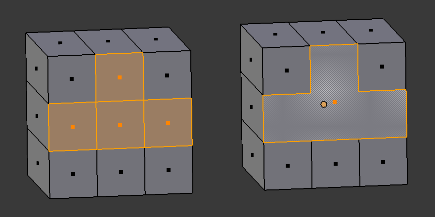 融解は削除と異なり、できるだけ選択した要素のみを削除するように振る舞います。 融解を実行しても、オブジェクトの表面に穴が開くことはありません。